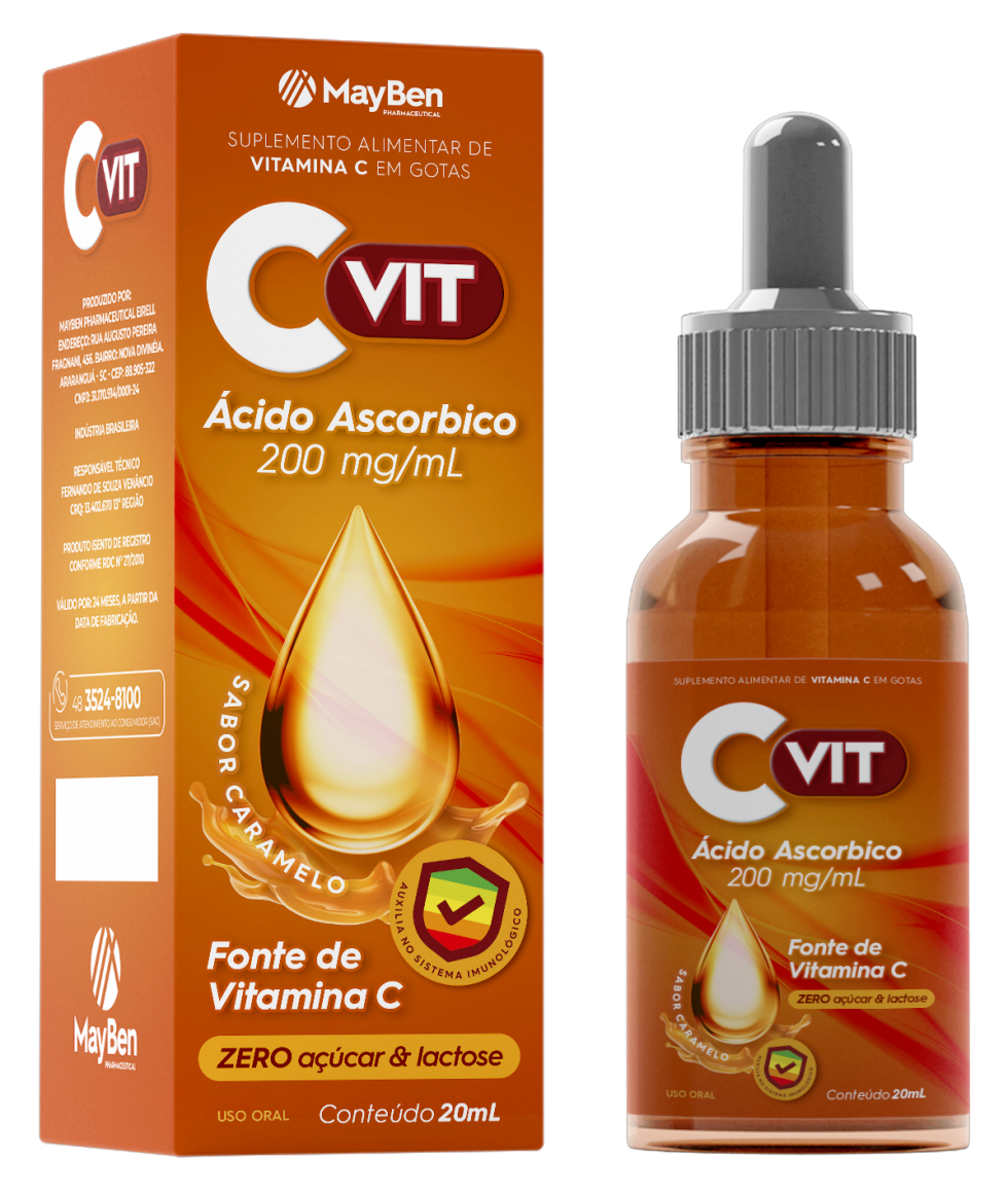 Suplemento alimentar de vitamina c em gotas | Sabor caramelo